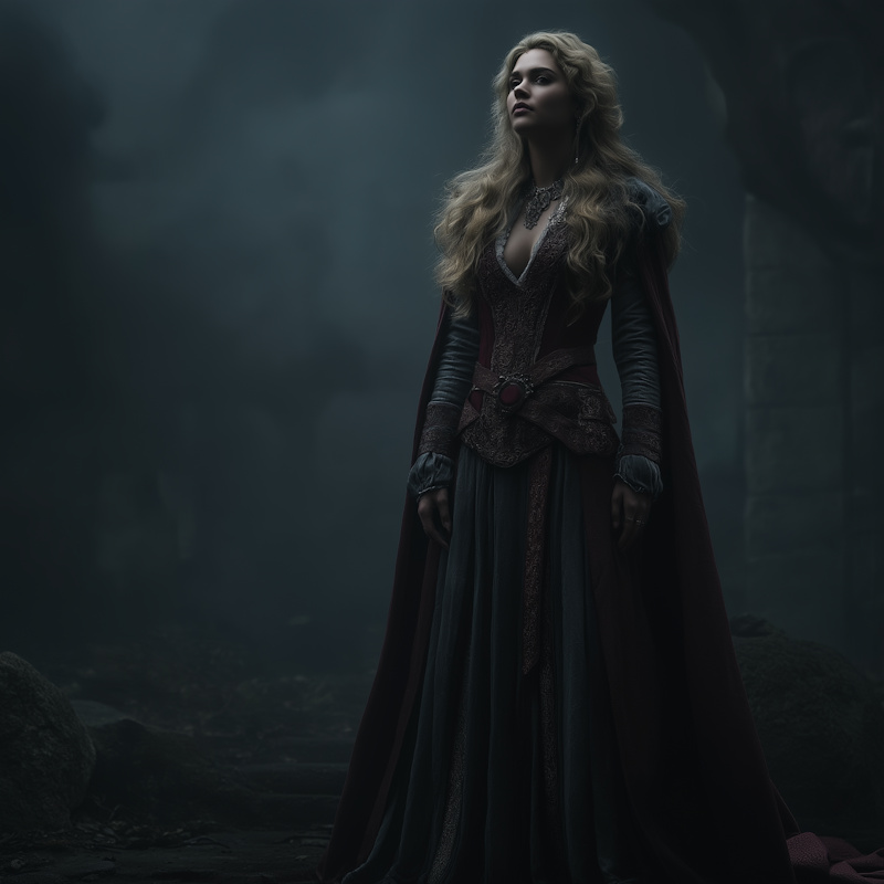 Celestine is a statuesque woman in her late twenties with long blonde hair and stormy grey eyes.